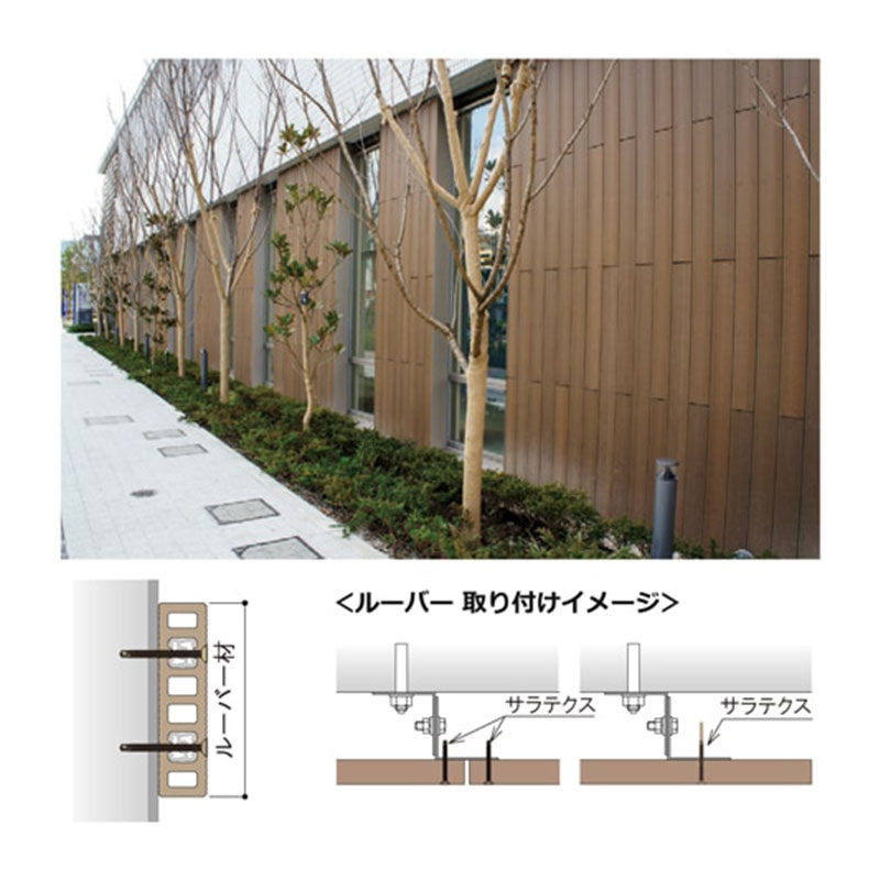 ハンディウッドの自然な木質感を損なうことなく端部をしっかりと固定するサラテクスは、デッキ材やルーバー材とマッチする配色で、意匠性を追求したデッキ面&壁面を実現できます。