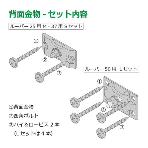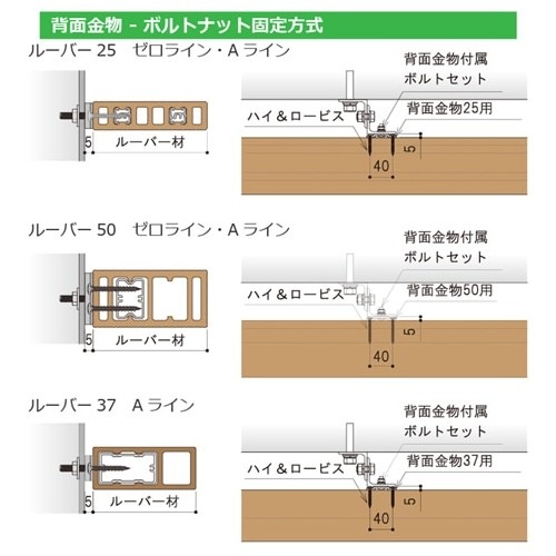 背面金物-ボルトナット方式での、直行ルーバーの設置にご使用ください。