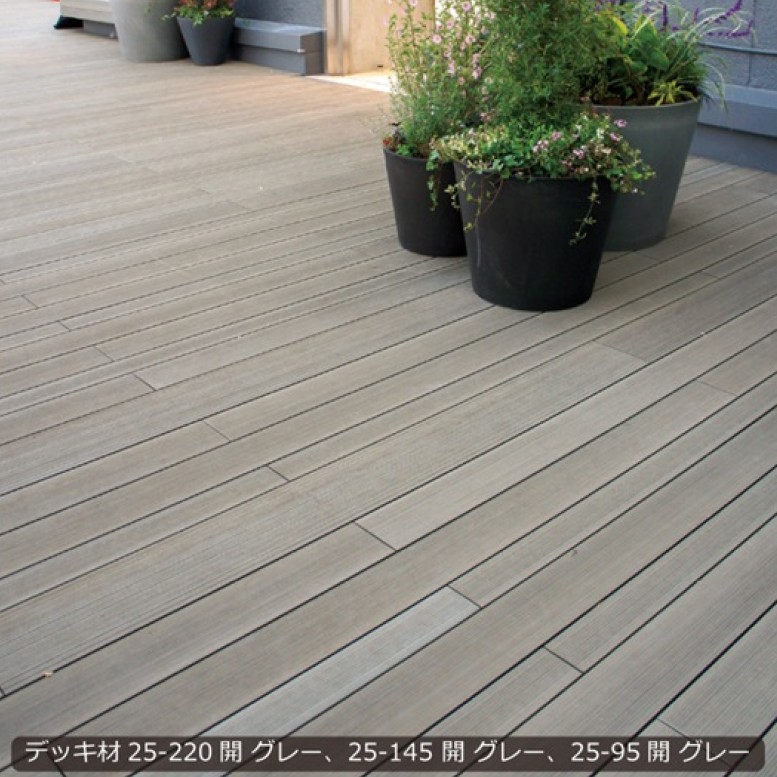 デッキ幅が220mmあるため、ウッドデッキがダイナミックな印象に仕上がります。また施工枚数=施工手間が減り施工のスピードアップを可能にします。他サイズと組み合せたアクセント使いにもお奨めです。※L=3,000、及び閉タイプはございません。