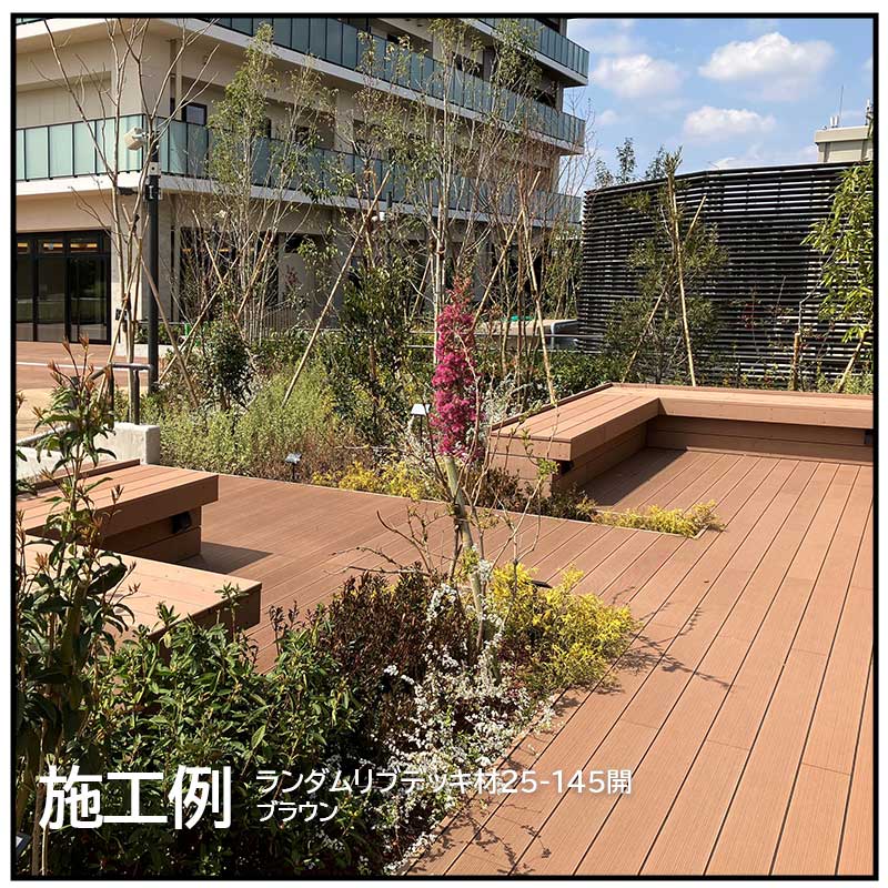 環境素材でありながら安全性・耐久性・意匠性・施工性に優れたハンディウッドデッキ材。中でも25-145は、副資材やバリエーションがもっとも充実しており、公共施設・教育施設・大型商業施設~住宅まで多様な場所でご採用いただいています。