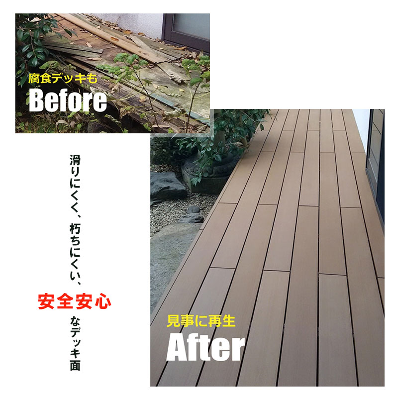 - <備 考>デッキ材は伸縮を考慮し定尺より若干長めのラフカット状態でお届けします。正寸納品をご希望の方は、別途カットオプションをご利用ください