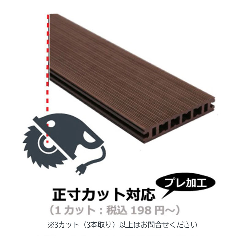 - ・デッキ材は伸縮を考慮し定尺より若干長めのラフカット状態でお届けします。正寸納品をご希望の方は、別途カットオプションをご利用ください