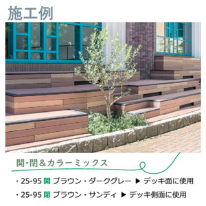 標準の145mm幅より50mm細く仕上げた25-95の「閉」タイプは、低床デッキの幕板や、蹴上げの低い階段蹴込板などに最適です。また閉タイプは木根太現場でのデッキ面の施工(脳天ビス打ち)にも対応します。商品説明