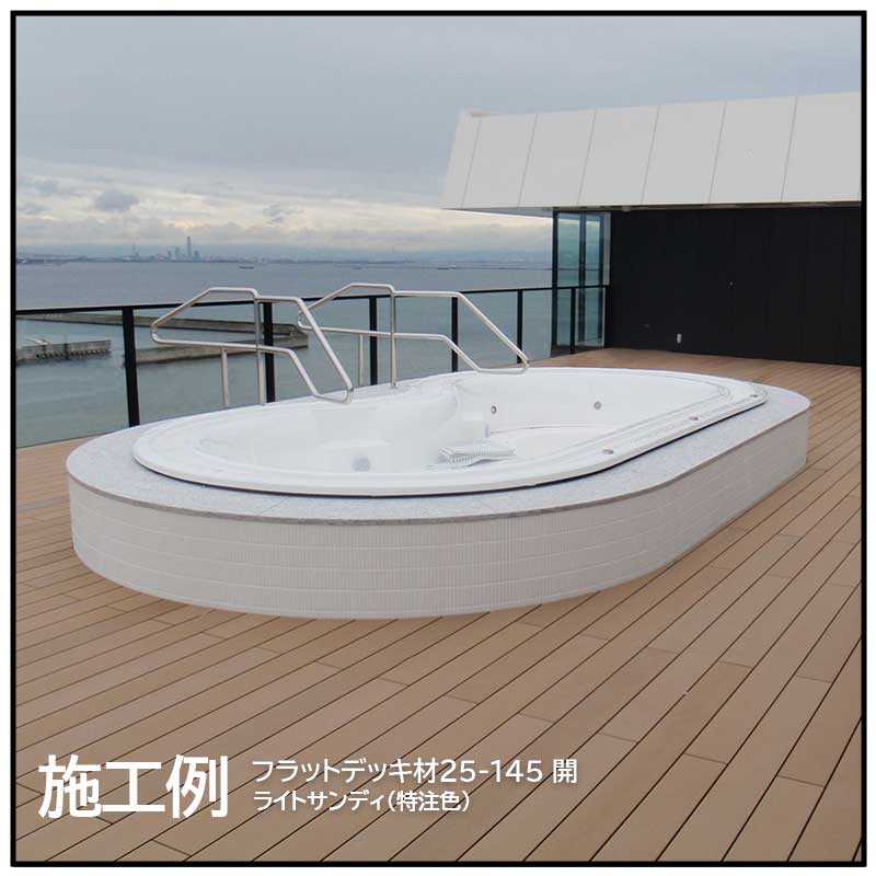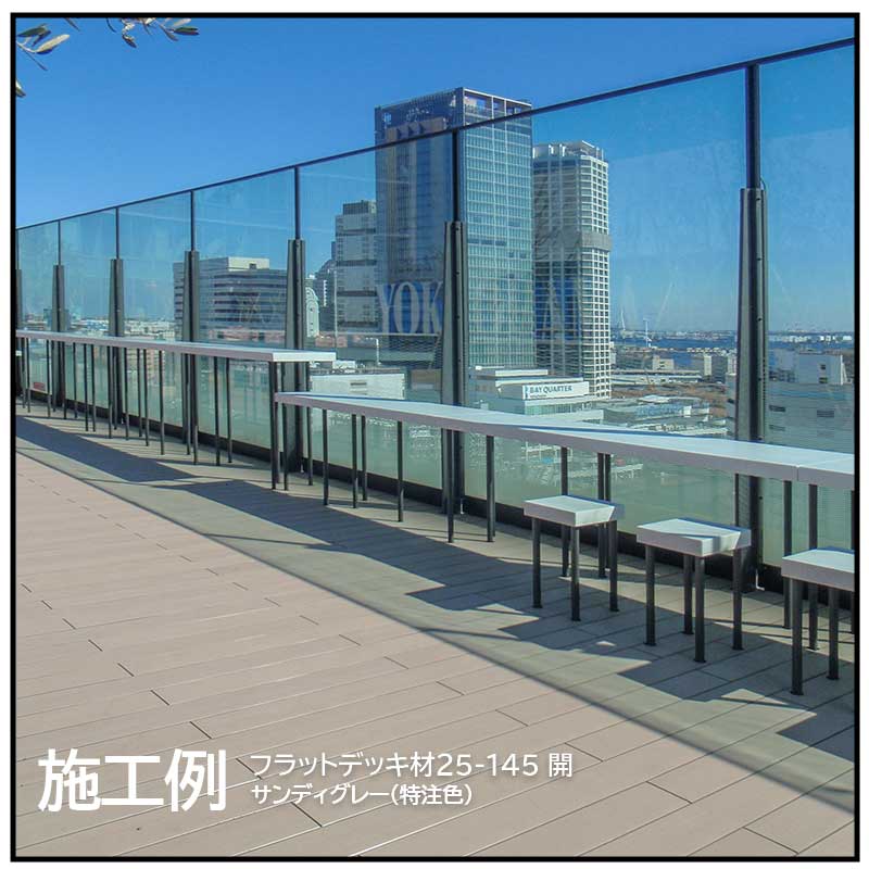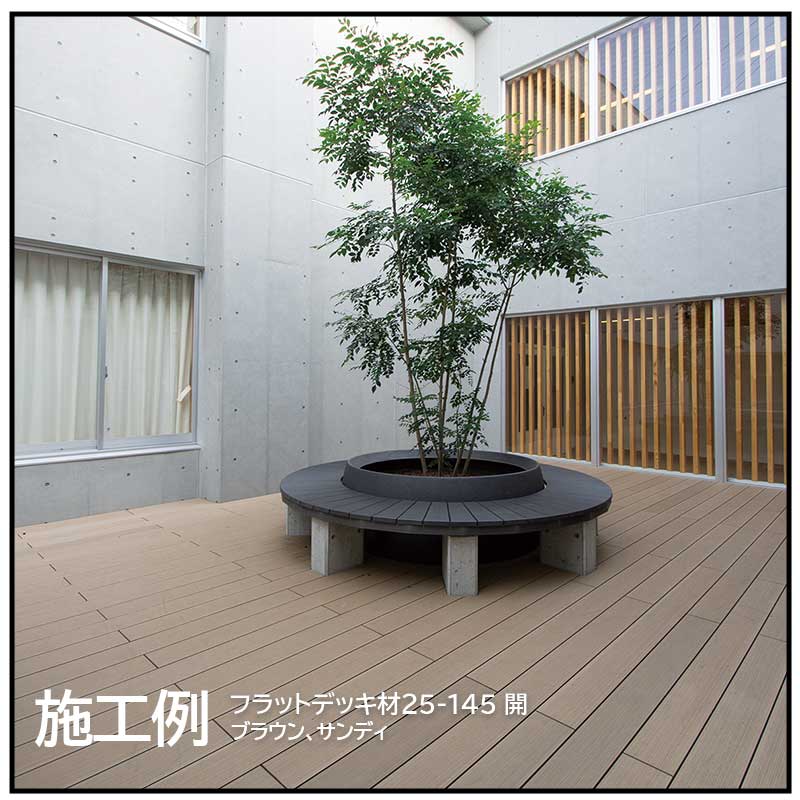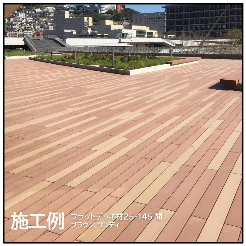 天然木材(南洋材・ハードウッド)の代替品として誕生したフラットデッキ材。特にスタンダードサイズの25-145開は副資材等も充実しており、公共施設・教育施設・大型商業施設~住宅まで様々な現場のニーズに対応します。商品説明